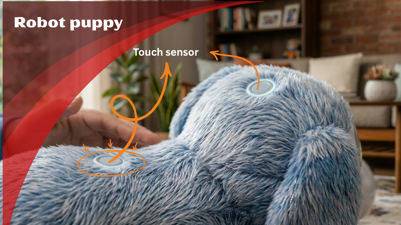 - Touch sensors: Let it respond with tail wags, barks, or whines depending on your interaction.